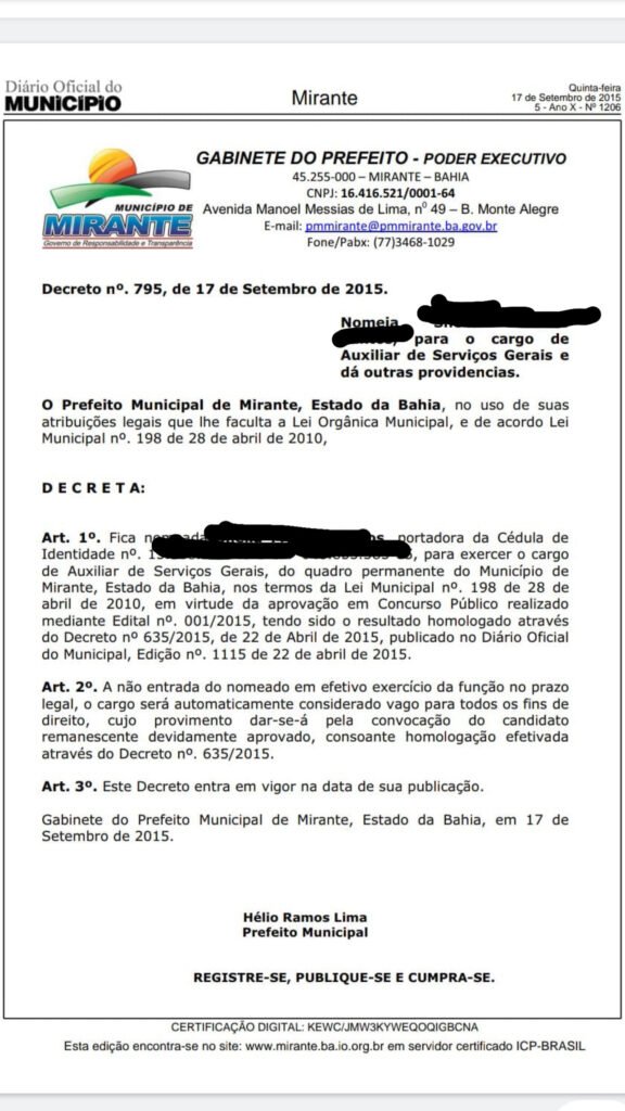 Apesar disso, há denúncias de que candidatos de outros municípios estariam fraudando comprovantes de residência para concorrer às vagas. Um caso específico chama a atenção: uma candidata de Mirante, que é servidora pública municipal ativa naquela cidade, teria utilizado um comprovante de endereço em nome dos pais para disputar vaga em Vitória da Conquista. Há, inclusive, documentos que comprovam que ela reside e trabalha em Mirante.
